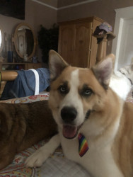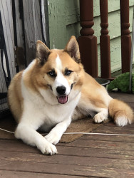 Dakota is one amazing dog he protects everything, our land and Myla. His partner in crime. He is the best dog ever. He’s like my best friend. He always wants to be with me. We have our spot on the loveseat and it’s our spot no one can sit on our loveseat. he should be America’s favorite dog besides the fact that he’s very handsome. He’s one special dog and I hope everyone sees that and it would totally help us. Thank you.