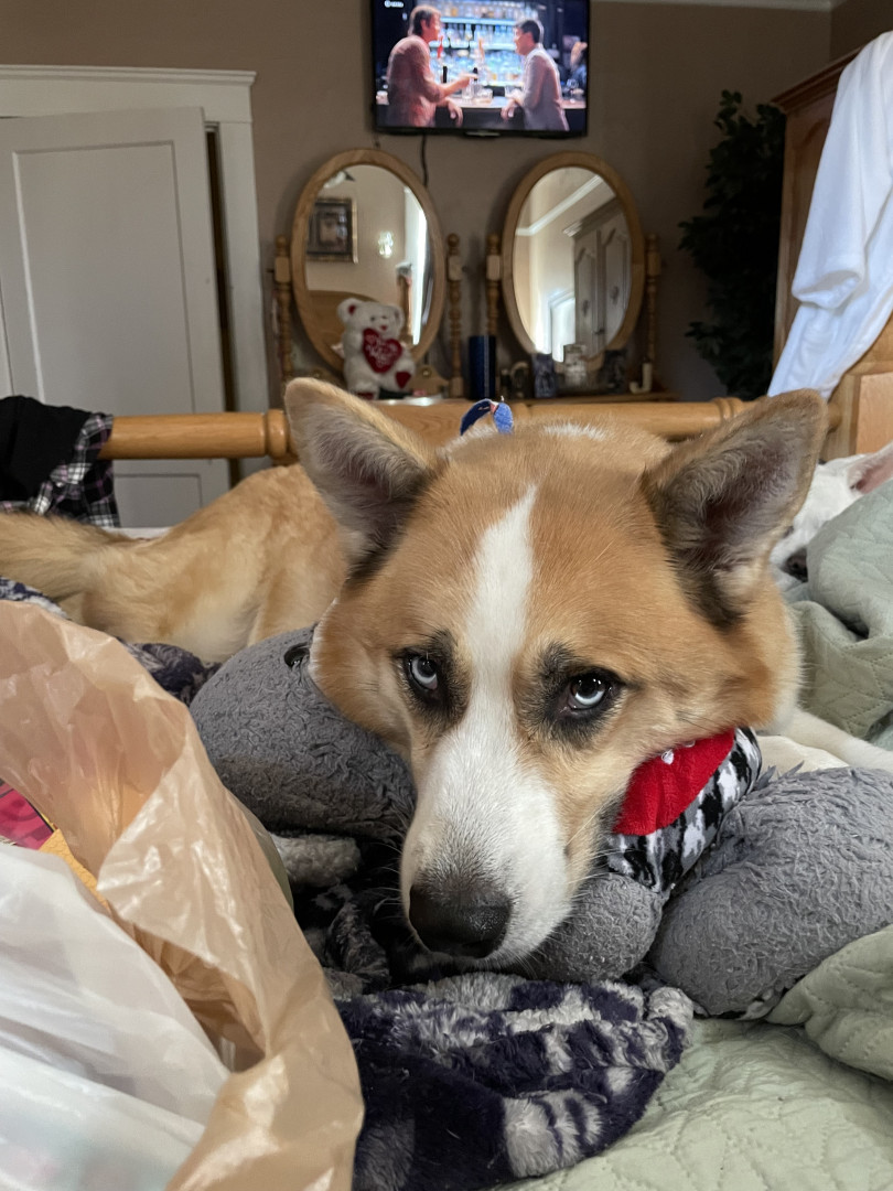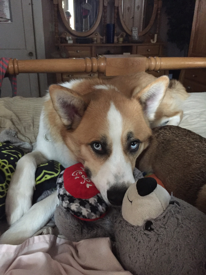 The bear I sleep with. And his go to treat is duck wrapped sweet potato.