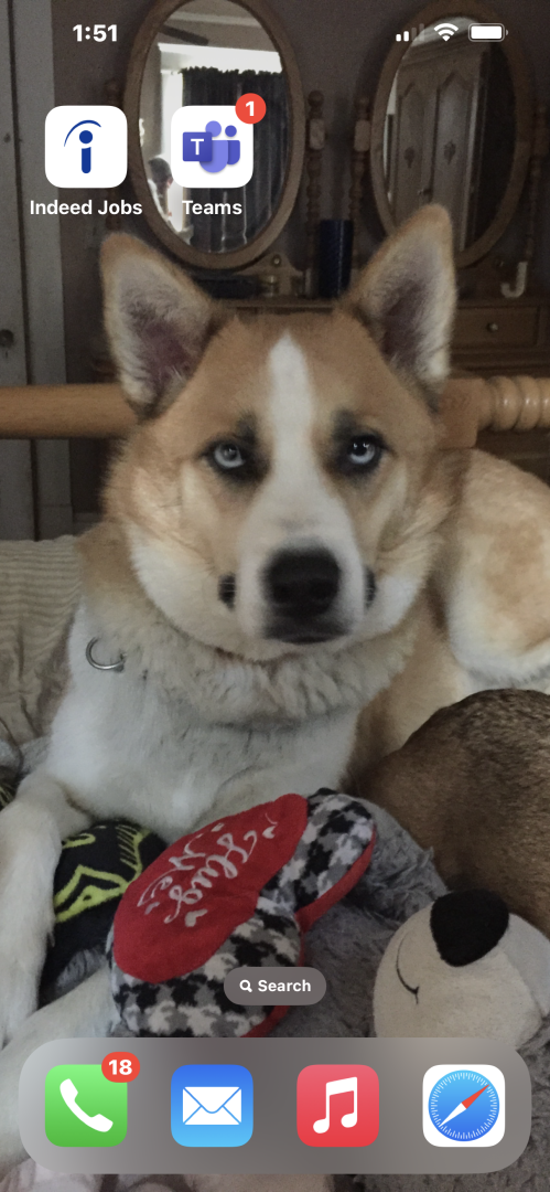 My dog is a total Mama’s boy. I can’t do anything without him. We have a loveseat we sit on. He knows that’s our place to sit.
