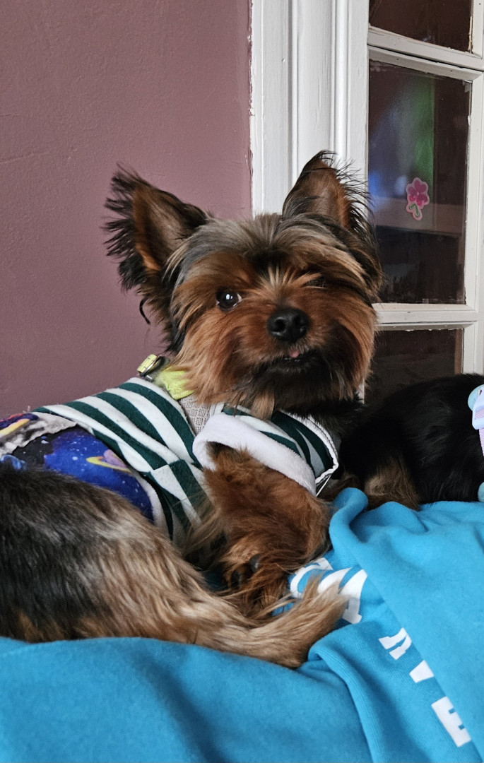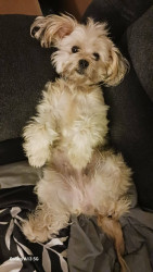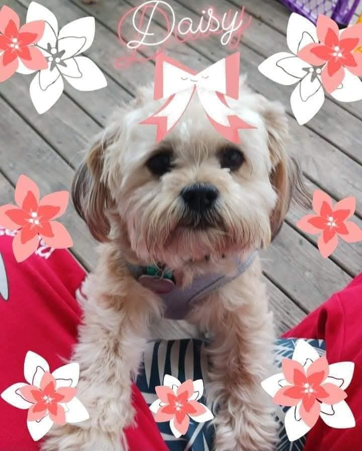 Daisy is the sweetest baby, she is 7 years old and loves to play , and stands on her hind legs and claps for treats .
