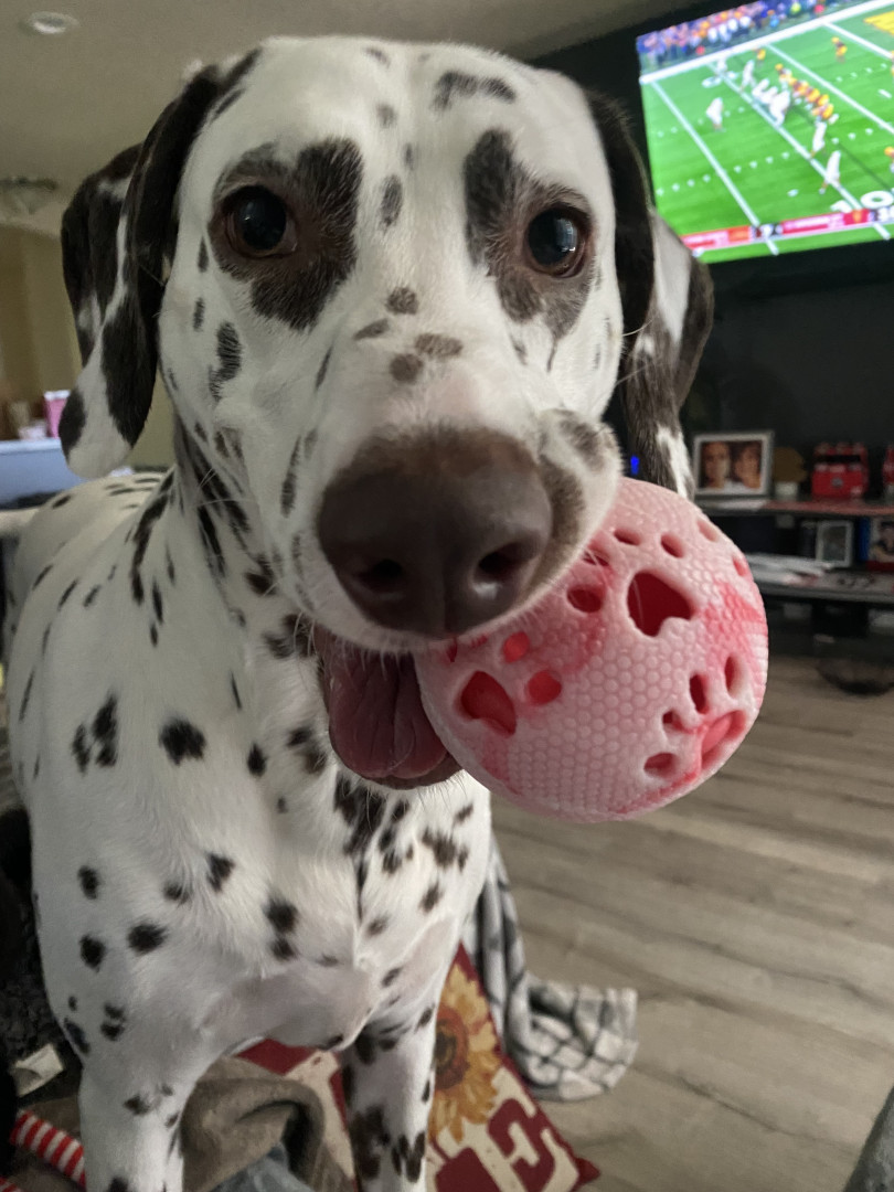 Any ball! She loves balls! Her favorite treat is Pup-peroni Filet Mignon flavor.
