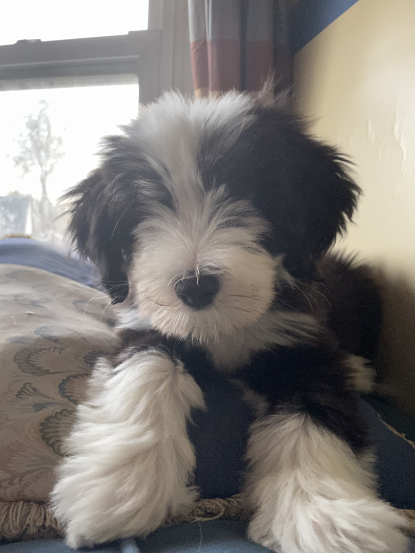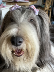 He’s a sweet, loving dog who enjoys scent work, his 2 cats and doing tricks.