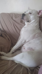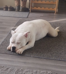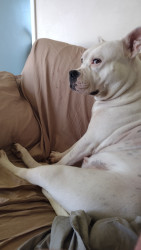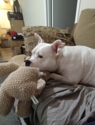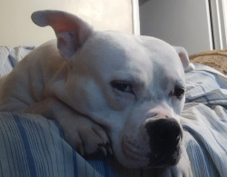 She's so sweet and loves 99.9% of people. But there is that .1% that comes by she doesn't like. And the person is a good friend of mine. It's odd but everyone has they're tic. And she is a SNORER BIG FRICKIN TIME!!!! We won't even talk about her farts, they're strong. Ever been hit in the nose by a fighter jet? The Jet be less damage to you. It's burnt my lungs, I gasped for air, they caught fire. My lungs burst into fire with her toxic fumes from her buttocks area. She still my fur baby thou.