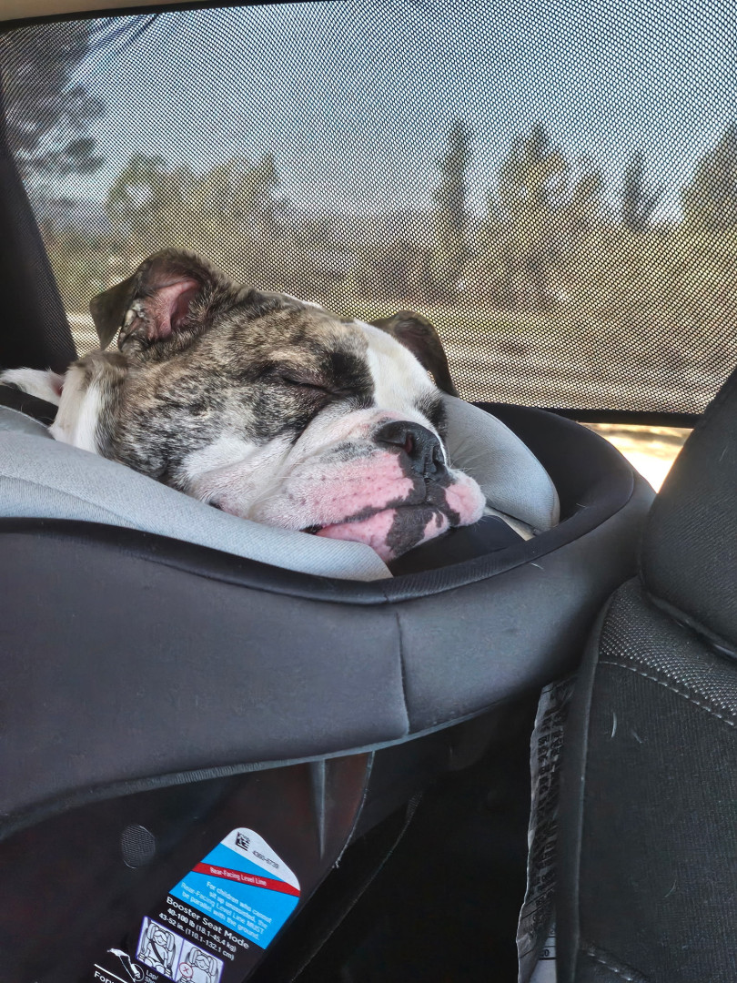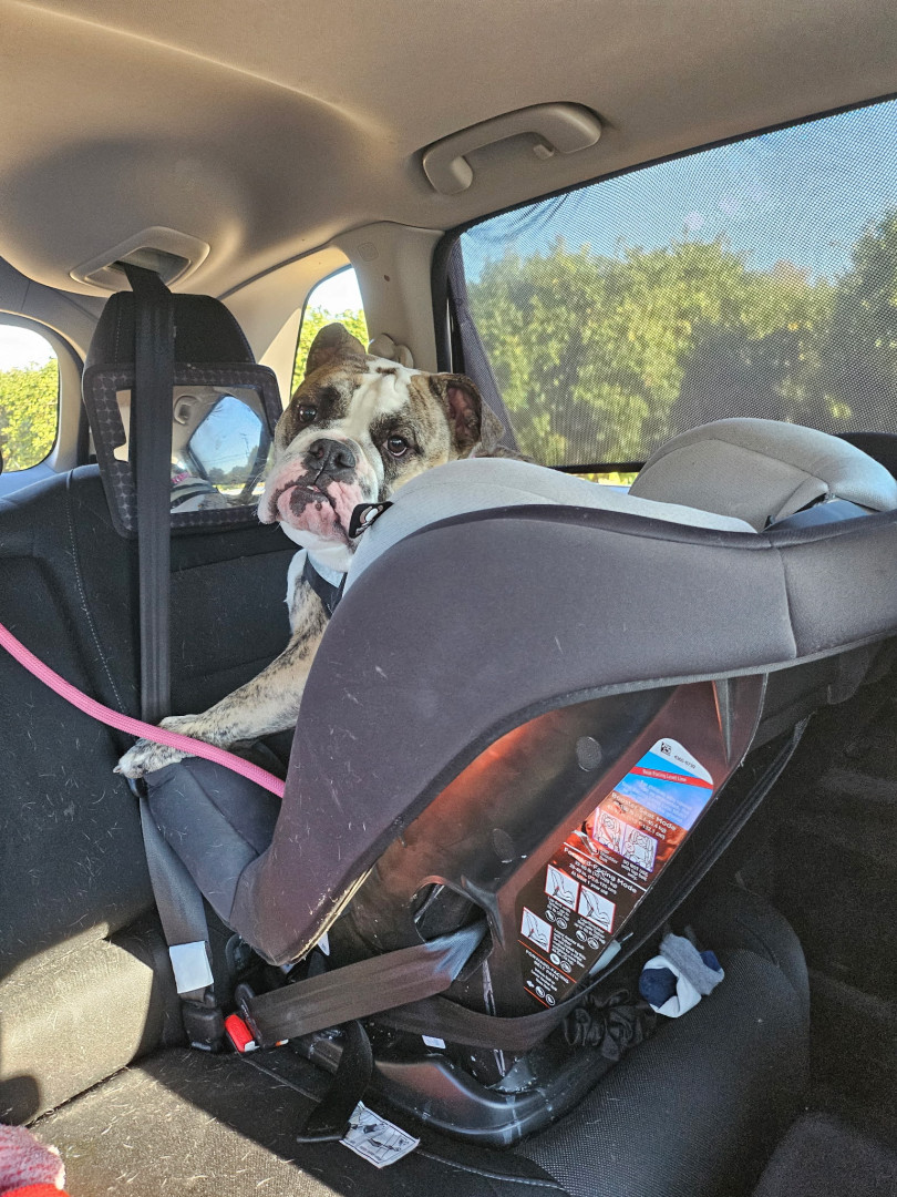 Wants to be cuddled constantly and truly thinks she is one of our grandchildren. She likes to sit in my youngest grandsons car seat when we travel anywhere.