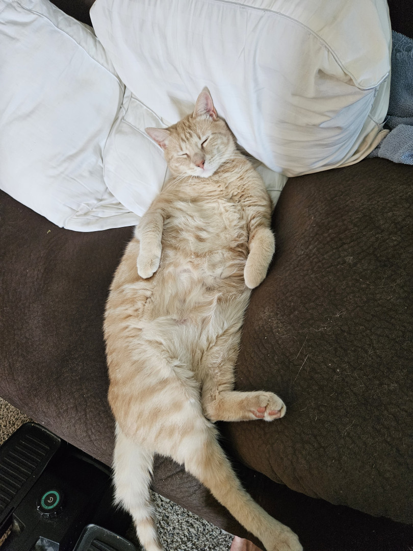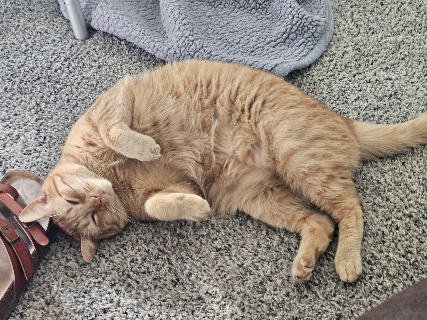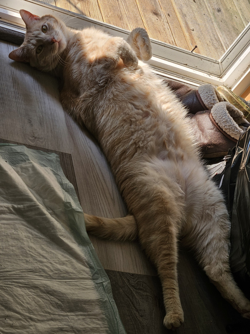 Big chunky love bug thinks hes a dog..doesn't know how to cat!