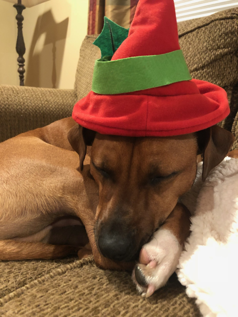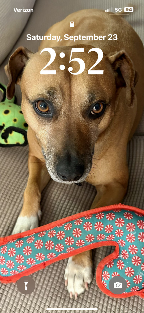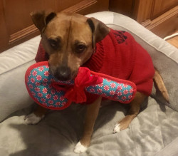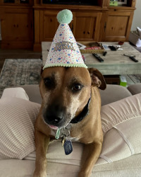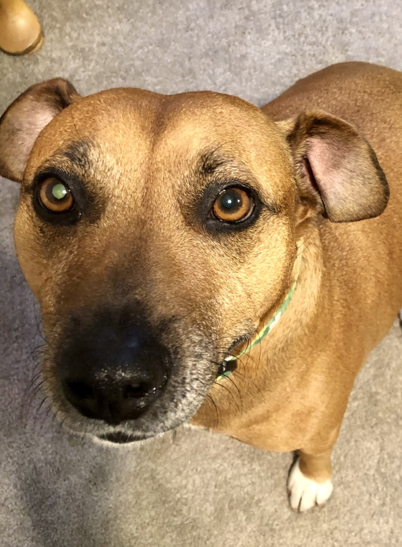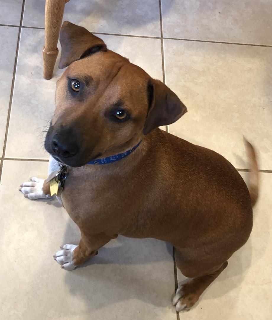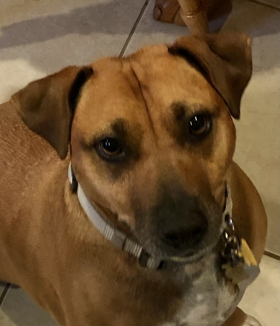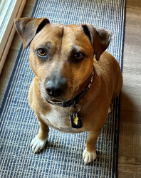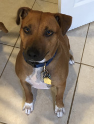 He is the sweetest dog ever. He loves everyone. And everyone loves him. We had his DNA done and he is truly a Heinz 57 boy. So many different breeds inside one fabulous boy. A melting pot just like America!