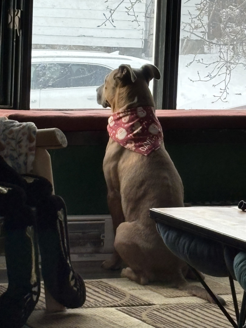 Dave is a rescued rez dog that was set to be put down for “causing problems”. Dave’s problems include needing all the treats and cuddles.