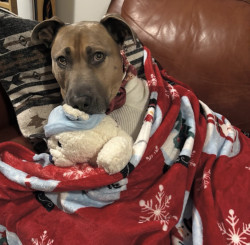 Learn MoreDave’s favourite toy is by far a stuffed octopus with crinkly legs. He loves to chew it, play tug of war with it, and throw it around. He doesn’t know he’s now on his third one of them, but gets really excited when it’s back in his basket with all 8 legs attached! His go-to treat is whatever his people are eating, and he’ll even smile for a bite.