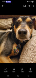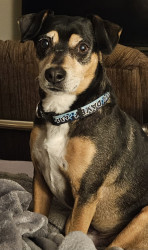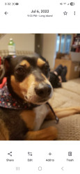 He's a rescued from the Tennessee Hurricanes and was out in the wilderness has scars above his eye and on his body but no matter he's still loves unconditionally.