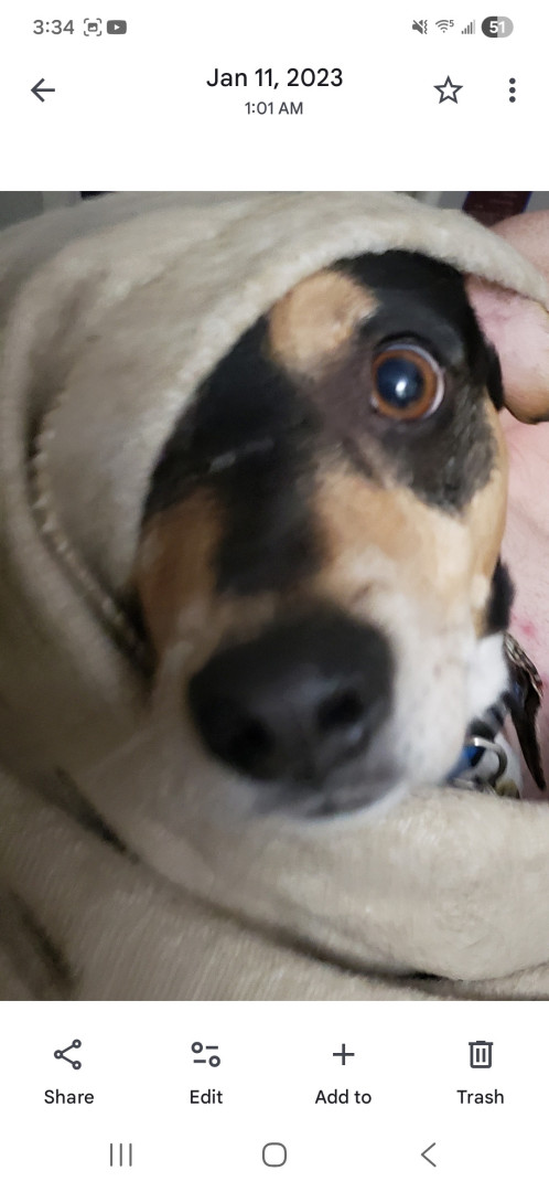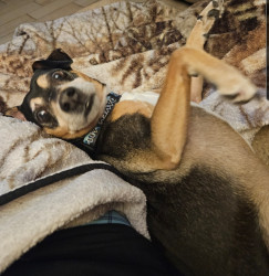 Davey is our rescue but I think truly rescued us. Scared of his own shadow but loves like no other. He's "The Love Machine"!
