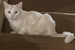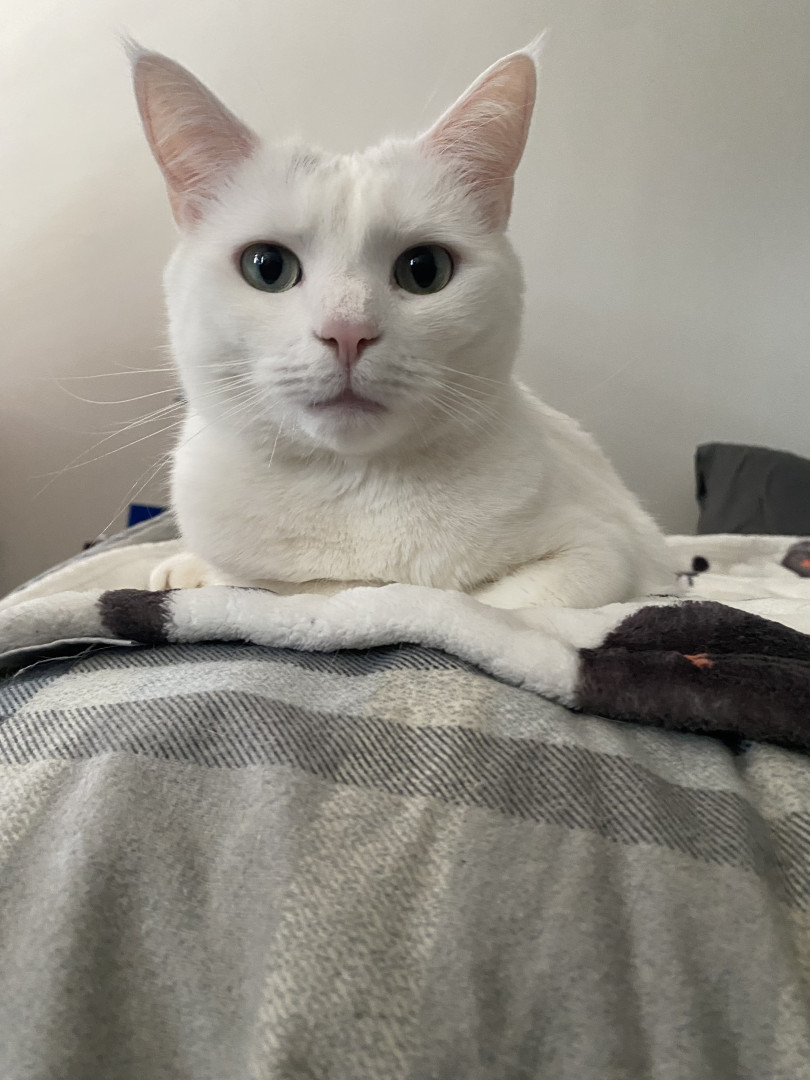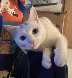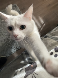 She loves everyone. She has the cutest squeak instead of a meow. And I also have her sibling with whom she has a bond that I’ve never seen in 40 years of owning cats. She also has the softest, silkiest fur and beautiful light green eyes.