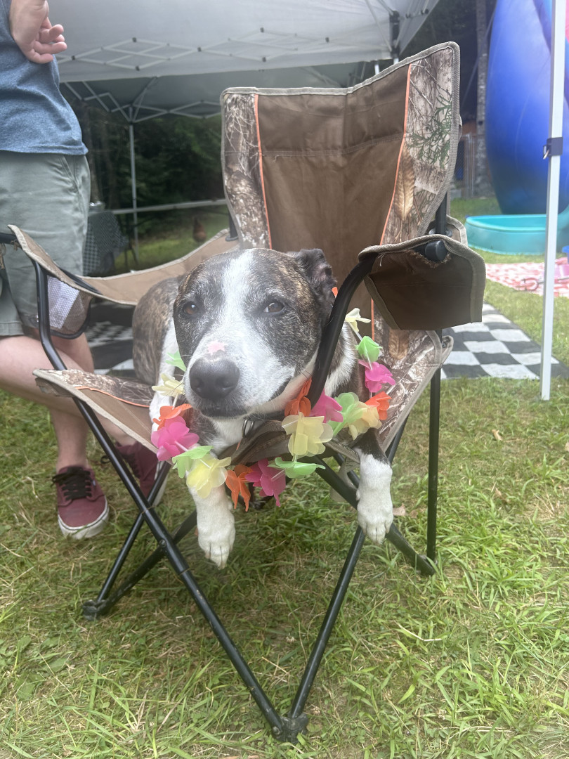 Deez is a lovable outgoing cuddlebug who is always down to party(or chill in a chair at a luau)