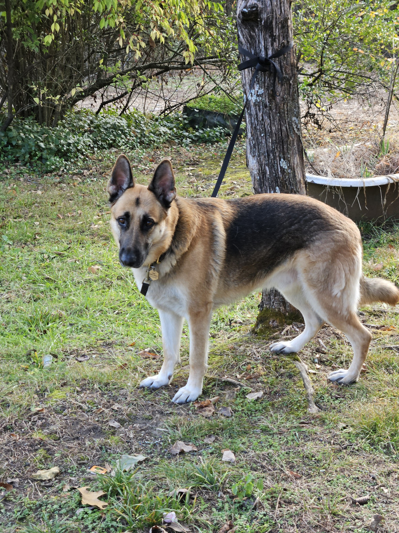 Hes a pstd servic dog that had an owner.he passed was kicked out on strest an went to pound got another owner he got demntia an i got him.