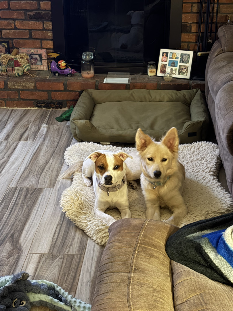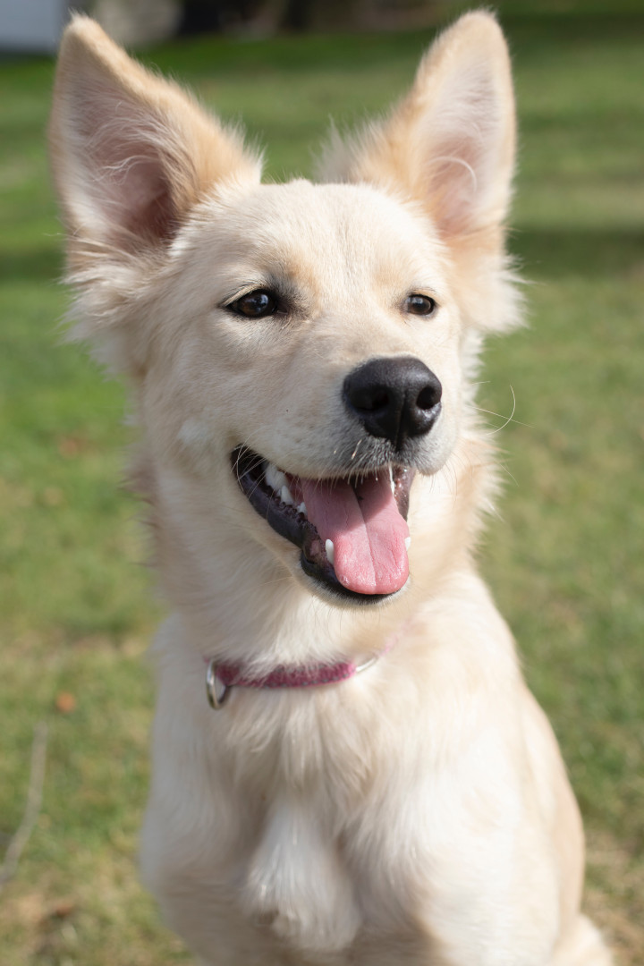 Delilah is the sweetest and silliest girl. She loves to play with her sister Ruby all day. Delilah is a Husky, Shepherd, Golden mix.