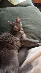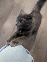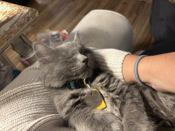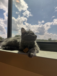 Dennis is a menace with sweet side. He’s loves climbing, the refrigerator, playing in water, and cuddling. The littlest guy with loud purrs.