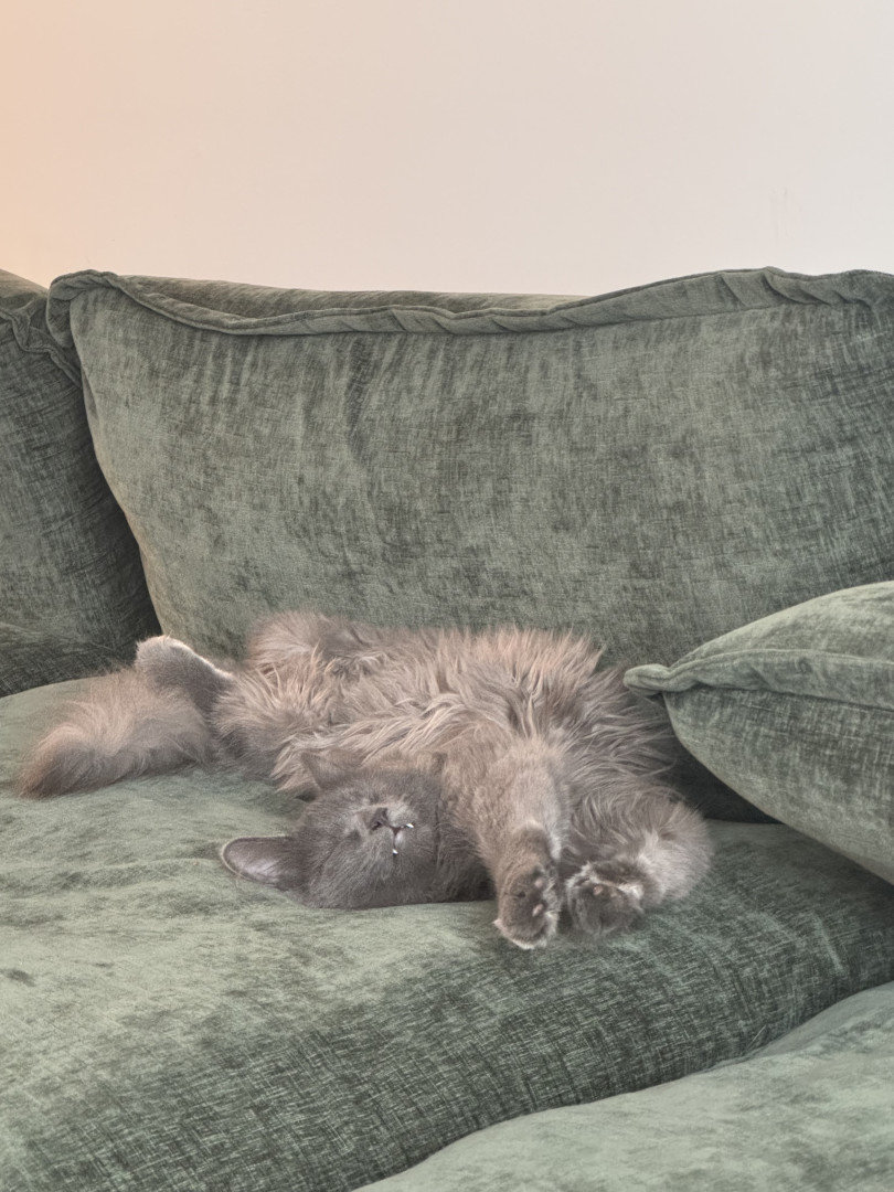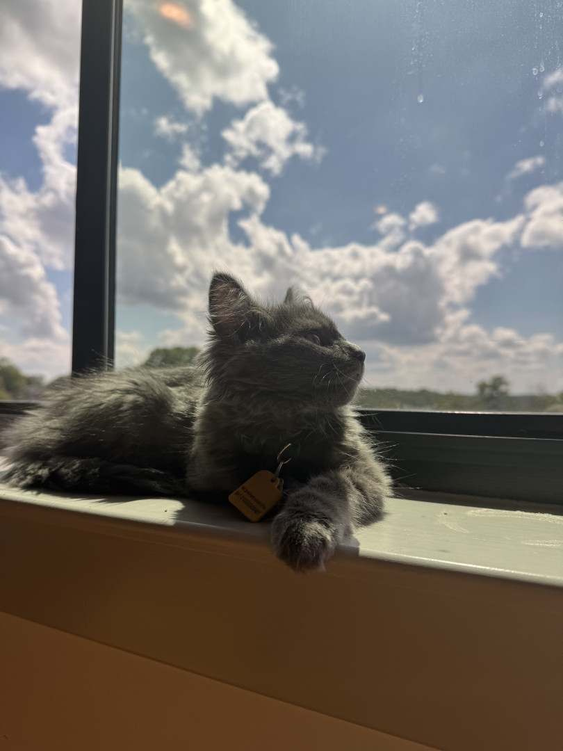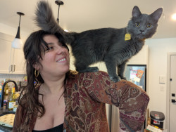 Dennis should be America’s favorite pet because he is adventurous, loving, and funny. He makes me laugh every day. Dennis is the kind of cat that could convince any non-cat person into one. He greets me and all guests when they walk through the door. Dennis came into my life very spontaneously and I’ve been lucky to be his human every day since.