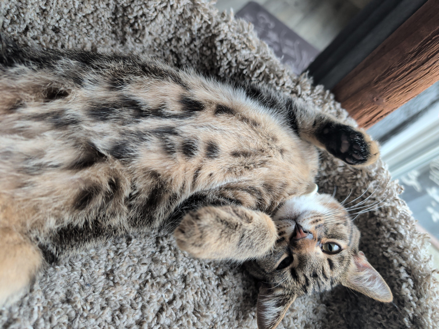 Tap the top of a bottle cap and he comes running out of nowhere. Full speed and sliding sideways! Also his belly is never off limits for unlimited belly rubs