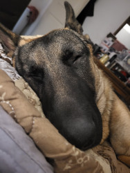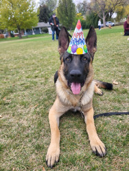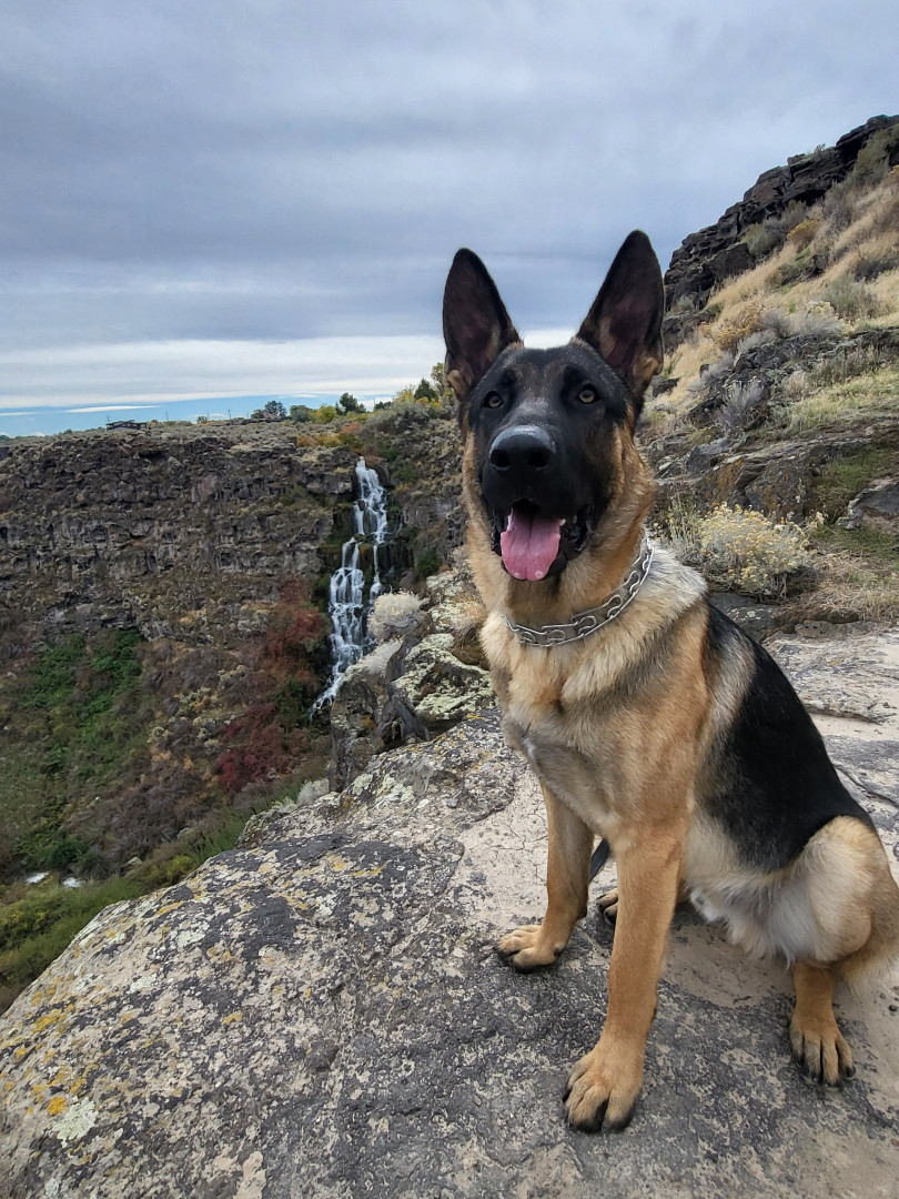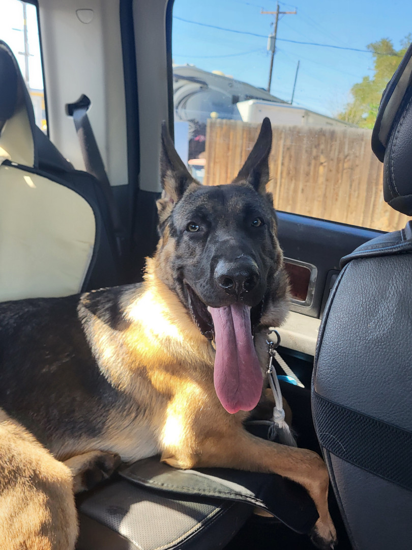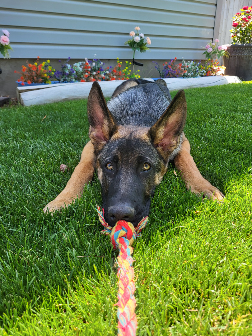 Dexter is a gentle Giant. He is a protective dog but jam packed with personallity, a big heart, and just wants to have fun. He is mellow when needed and plays hard during play time. For a dog he has many facial expressions with accents of large ears and eyebrows and a big smile all the time.