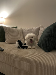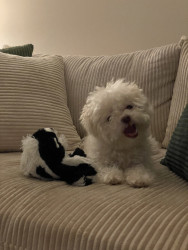 Dexter is a fluffy Maltipoo with a happy smile, gentle heart, and charm that melts everyone he meets.