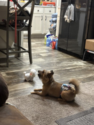 He’s one sweet pup He’s a service dog plus beloved puppy He’s 2 years and full of spunk. A real wild child!!!