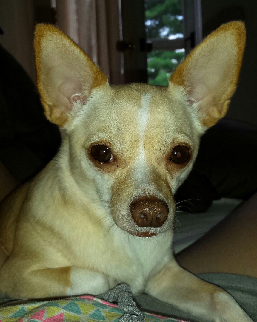 Diego is a fiesty, 11year old deer head chihuahua. His bark is worse than his bite. Very loving and protective. He is always on a mission.