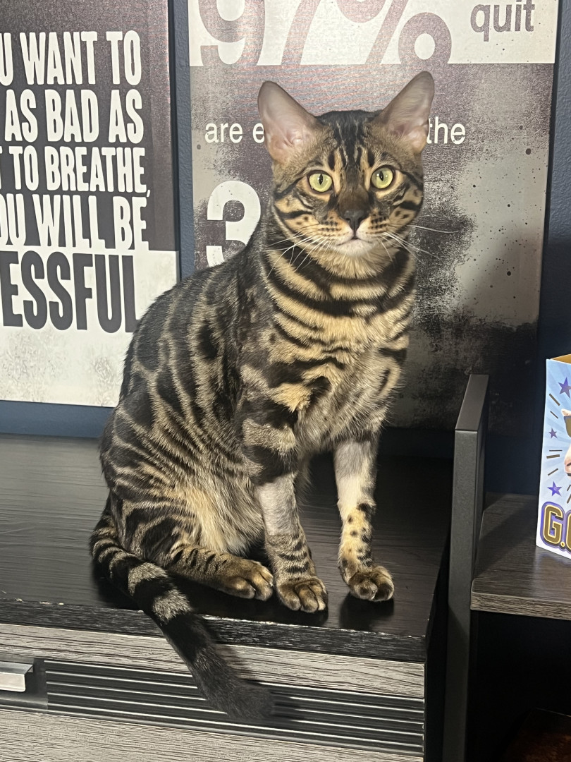 Diesel Gatti is about 9 months old and is a male Bengal cat.