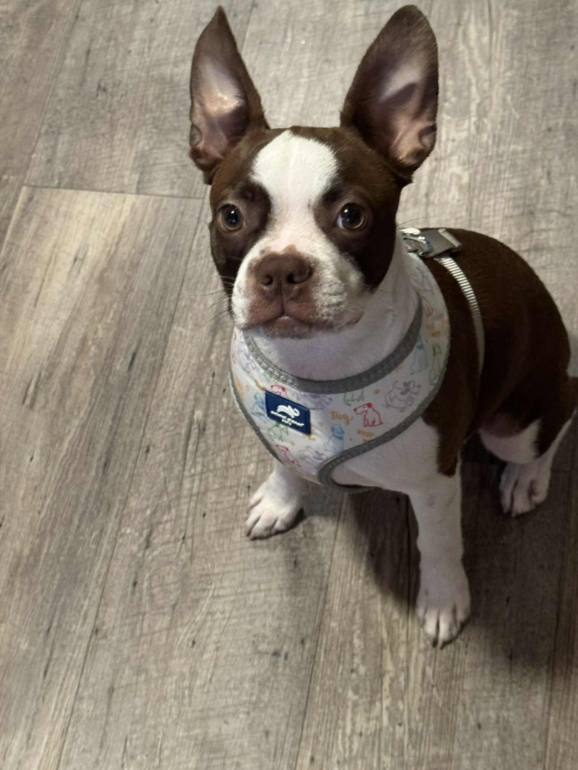 Diesel is a 7 month old Boston terrier he is hyper full of energy and he will keep you on your toes for sure.