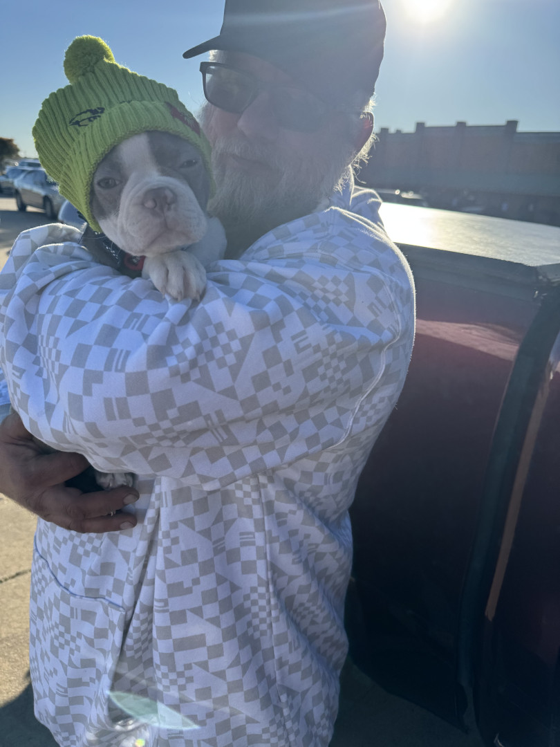 The fact that he is a rare color Boston Terrier of Lilac and White with Blue eyes