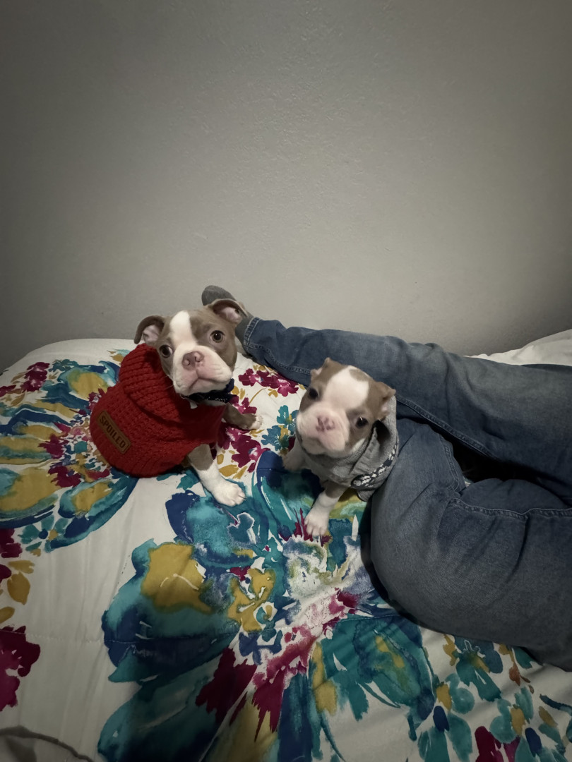 I have 2 amazing 4 month old Boston Terrier puppies. They are so Smart and loving mommas boys with the best personalities.