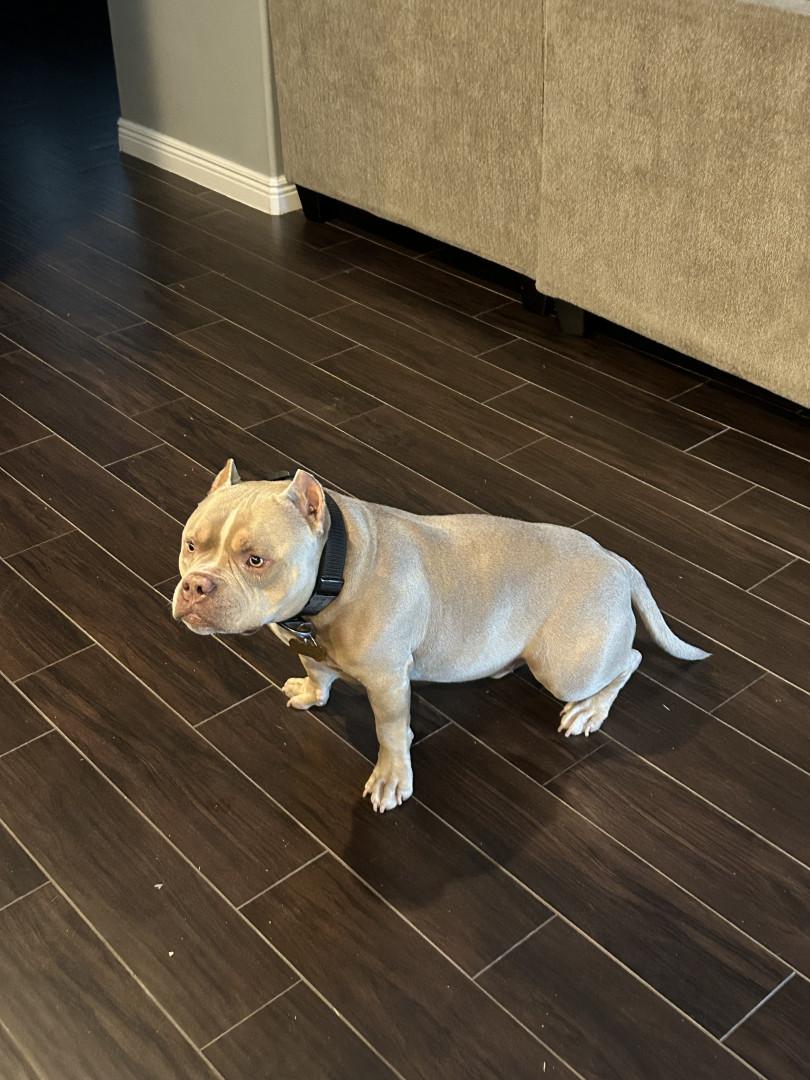 Diesel is an American bully that I rescued from pound and we been inseparable since he love car rides walks and his favorite squeaky toy