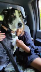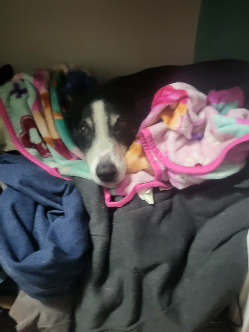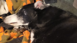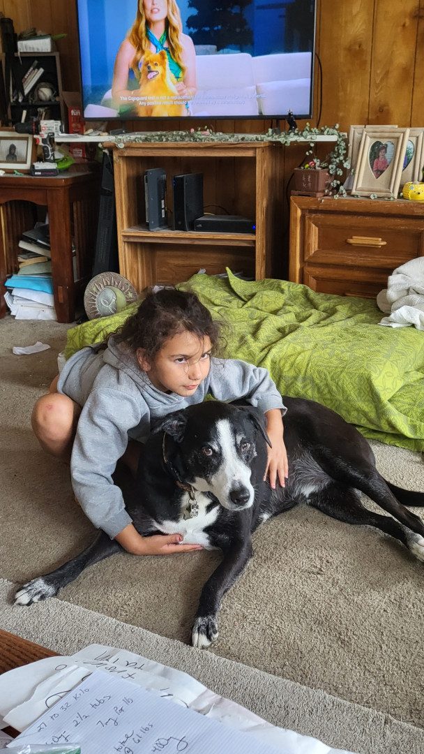 Paradise CA. Fire victim from shelter. We both have PTSD, Anxiety we both jump, ugghh. With my ol rescue neither of us are alone. Strong tog