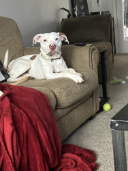 He is an energetic puppy. He loves to play and snuggle behind my back or in my lap. He loves to play outside and run.