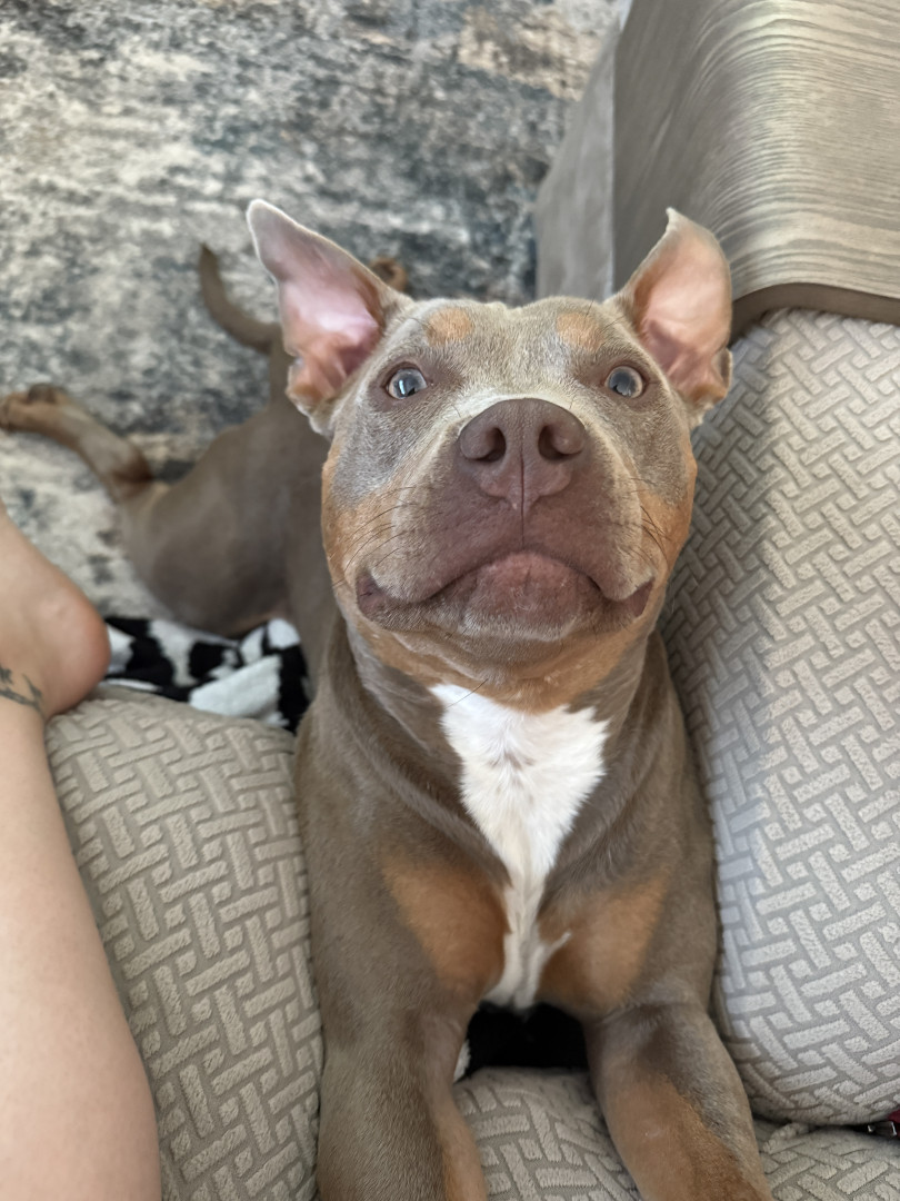 8 months ago he knew nothing about the outside world. He was kept in an RV with a homeless man the first year of his life. Everything was stressful and overwhelming when we brought him home. He has shown me how incredibly brave and resilient a dog can be. He’s also pulled out strength within myself I didn’t know I had. He has not been an “easy” dog by any means, but he has been more than worth any challenge thrown our way. He’s also the best cuddler in the world, plus he’s ADORABLE!