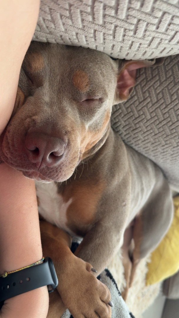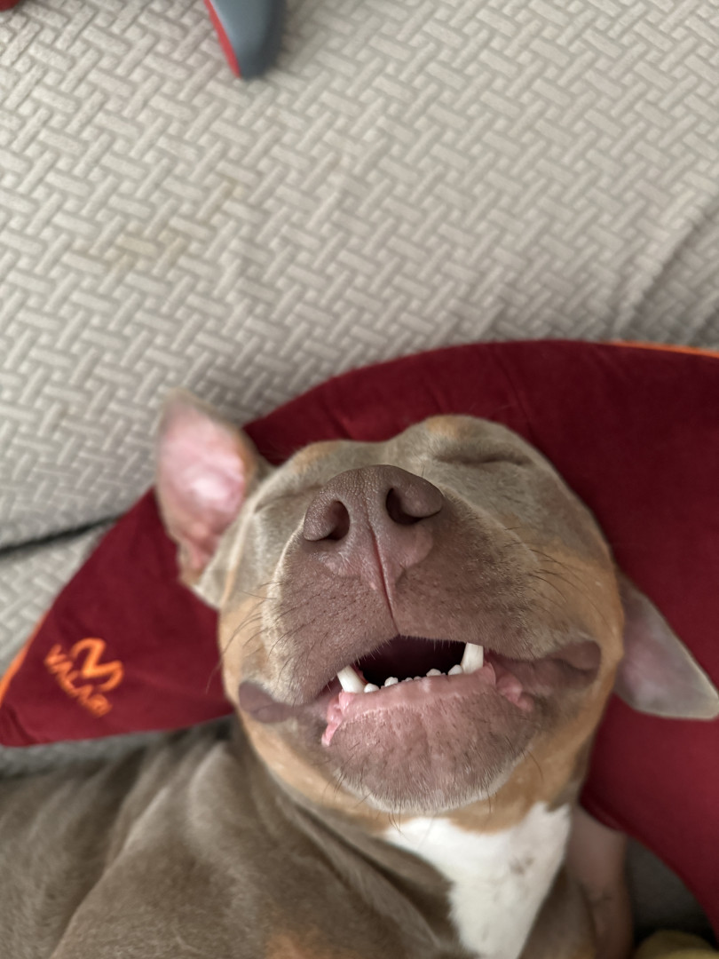 Dobby went from homeless to shelter to my home!! He’s a rescue that loves to snuggle, snorts like a pig, and snores like a grown man.