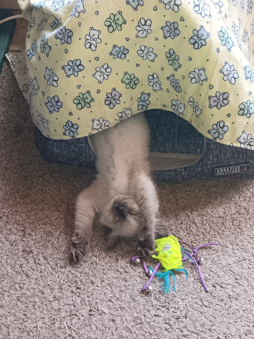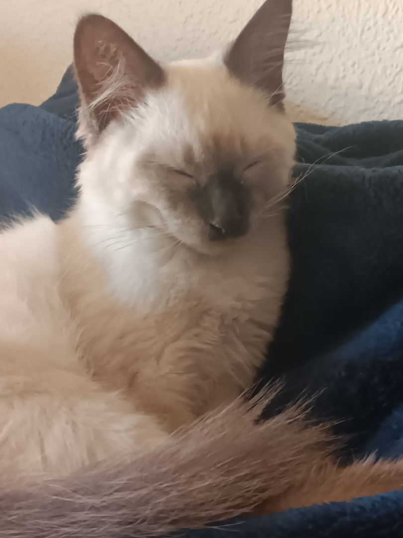 He cries every morning until I wake up and move my blanket for him to cuddle and fall asleep with me. He's the peacemaker, always tries to break up cat arguments or fights. He's empathetic ❤️