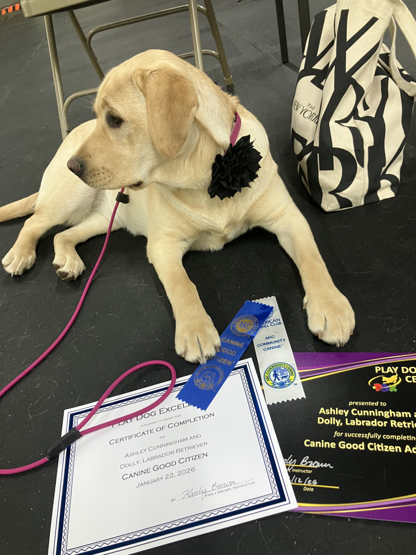Receive Text UpdatesDolly treats plushies like a badge of honor and carries them around with her head high and proud :). She will never turn down a game of fetch or any type of food, as she is a true Labrador Retriever who are known for their impressive appetites. However, Dolly treasures friendships more than food and toys, as she greats everyone she knows and doesn't know like the best friend she hasn't seen in years with an enthusiastic tail wag and bright eyes, which say "Thank you for coming to see me!"