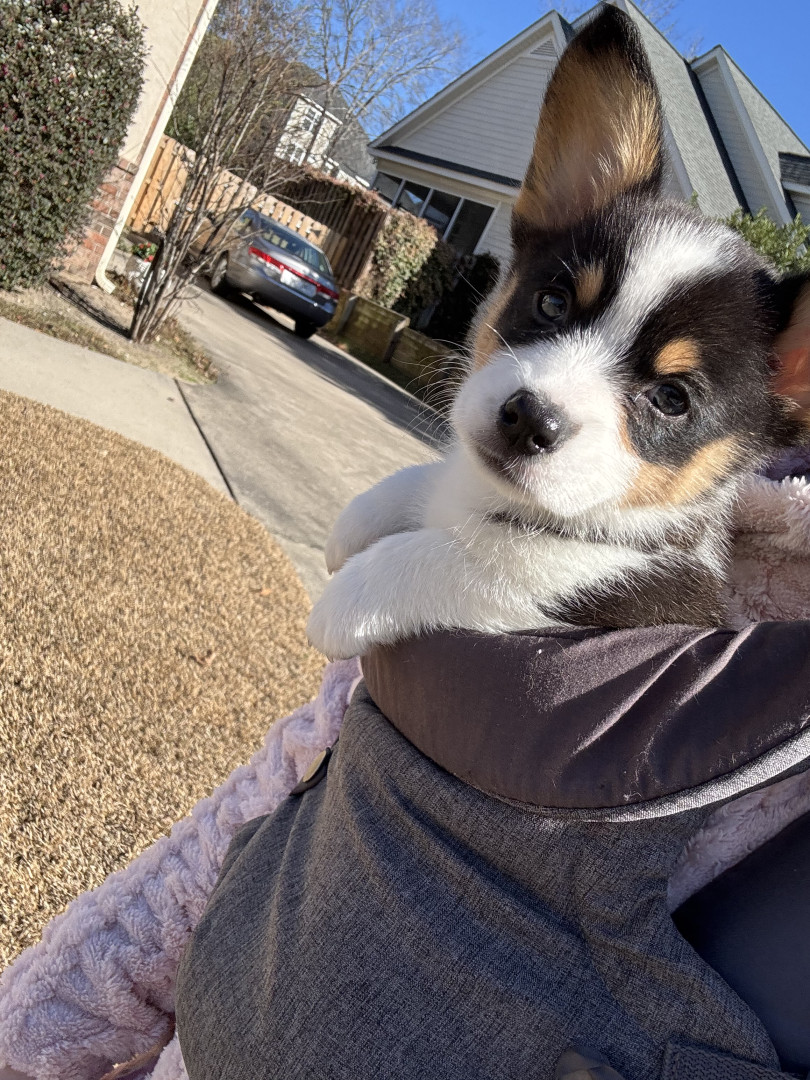 me and my family were not looking for a dog at the time, but my sisters coworkers corgi had puppies and they needed homes. dolly has been apart of our life for only about two weeks but shes changed mine in the best way possible, dealing with type one diabetes from such a young age (3 years old) has been very difficult and mentally taxing, but this baby has helped bring brightness back into my life! she is so sweet and silly and loving!