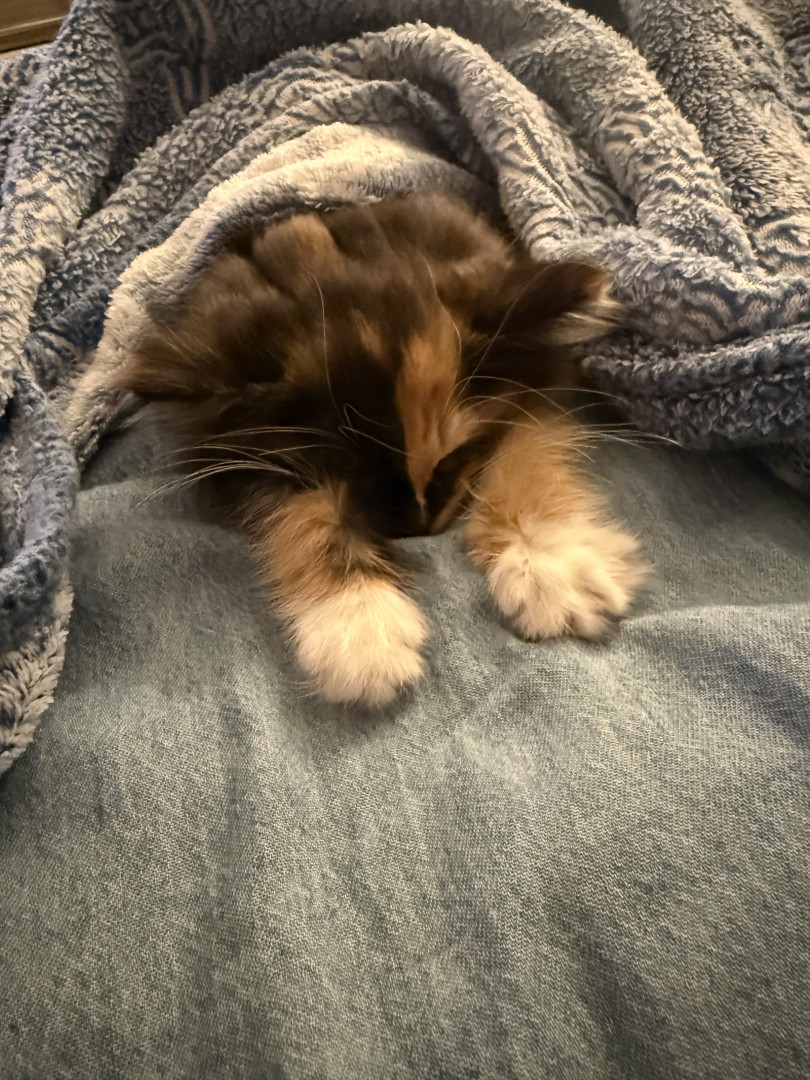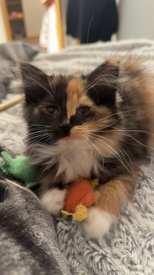 Dolly, or Dolly Parton-fee fee foo foo Joseph craven, is about 10 weeks old. She’s half Persian and half long haired breed mix