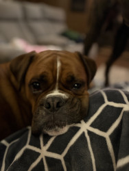 Dom is a chonky boxer bulldog mix, he loves people and loves playing with his brother diesel, dom also really likes food.
