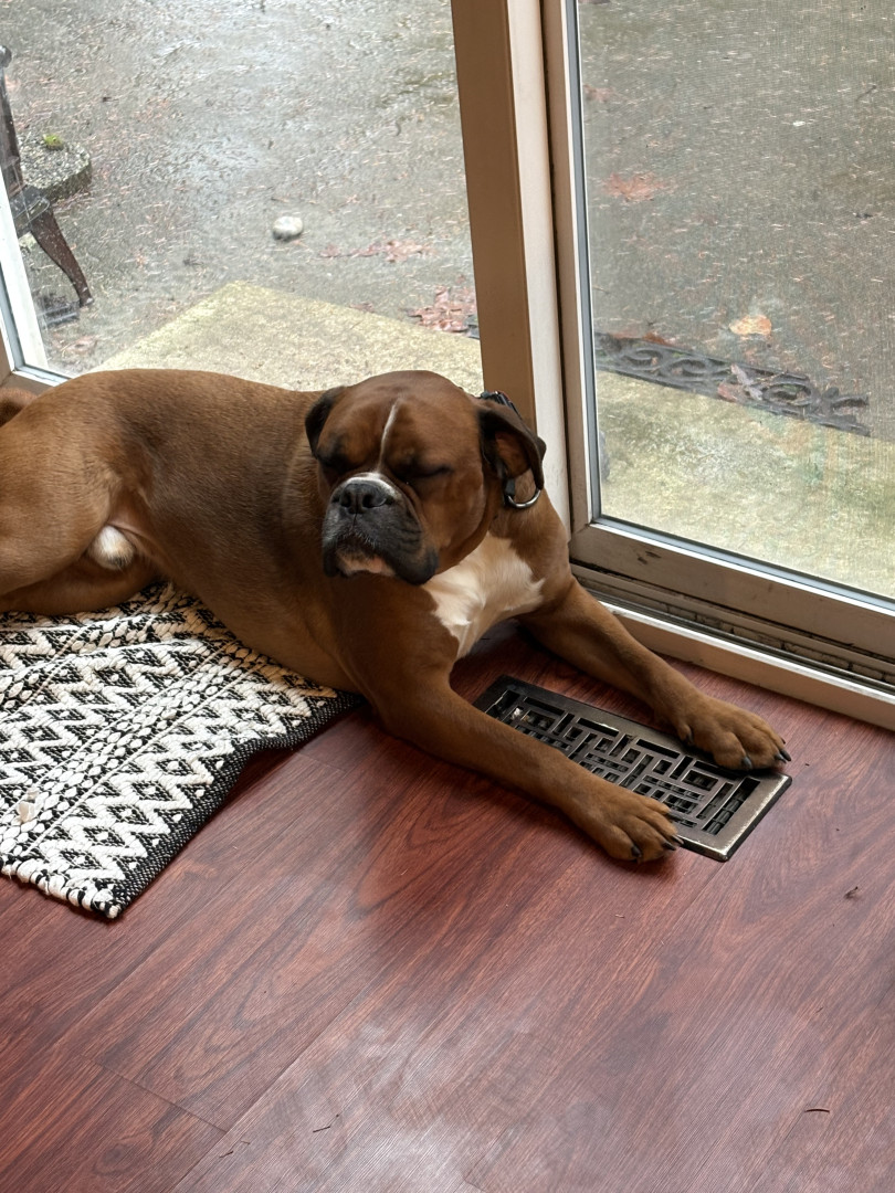 Dom should be America’s favorite because he’s the cutest most loving boxer bulldog.