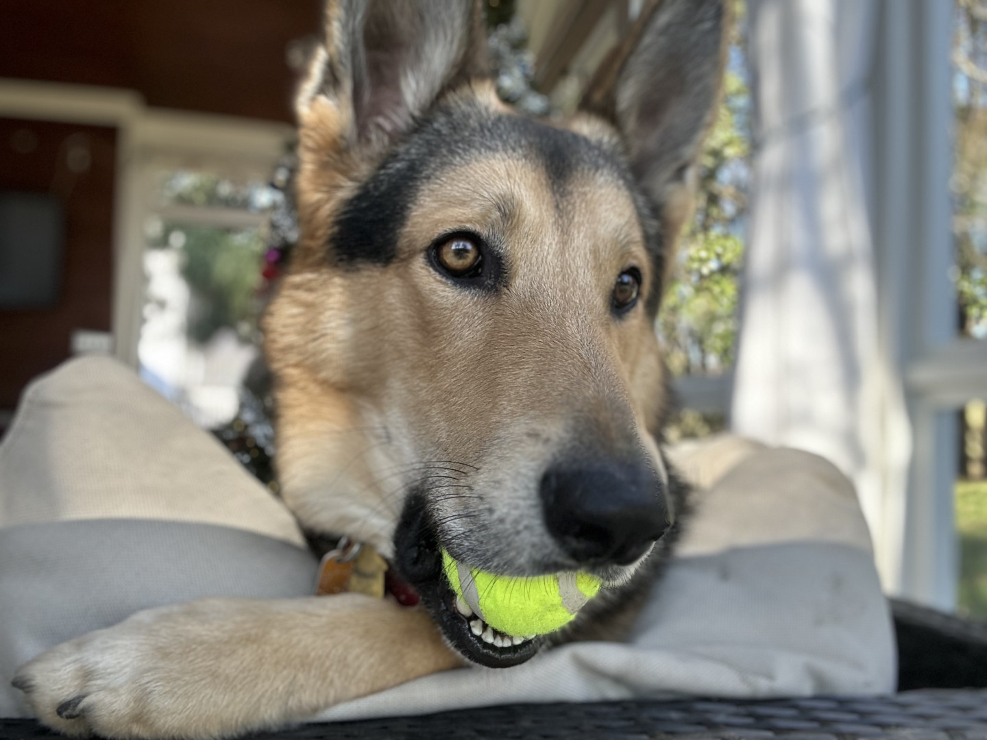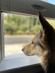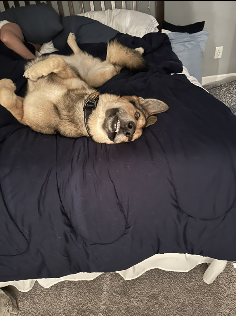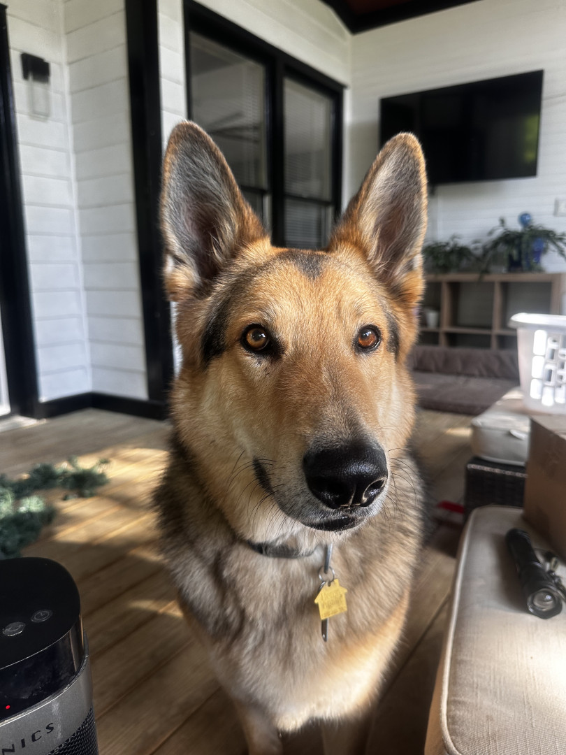 Dom is a sweet, friendly and loving protector from intruders, delivery men (especially UPS 🤣) and any leaf that dares to enter the yard.