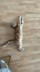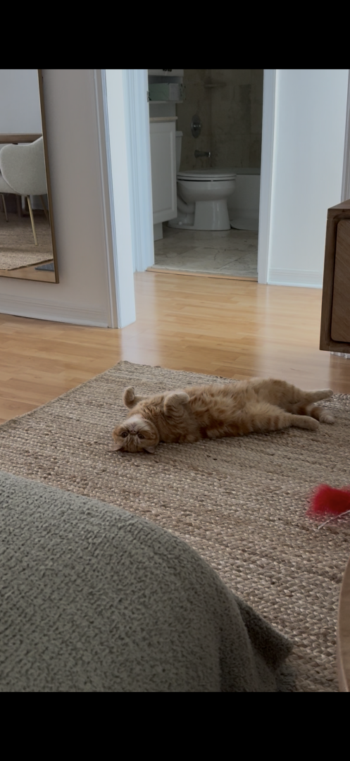 Donald’s unique belly-up quality is pure trusting laziness — she flops over completely exposed, fluffy tummy on full display, paws limp, eyes half-closed in ultimate chill mode. It’s the ultimate sign he’s 100% relaxed, zero defenses up, and too tired (or too comfy) to care.