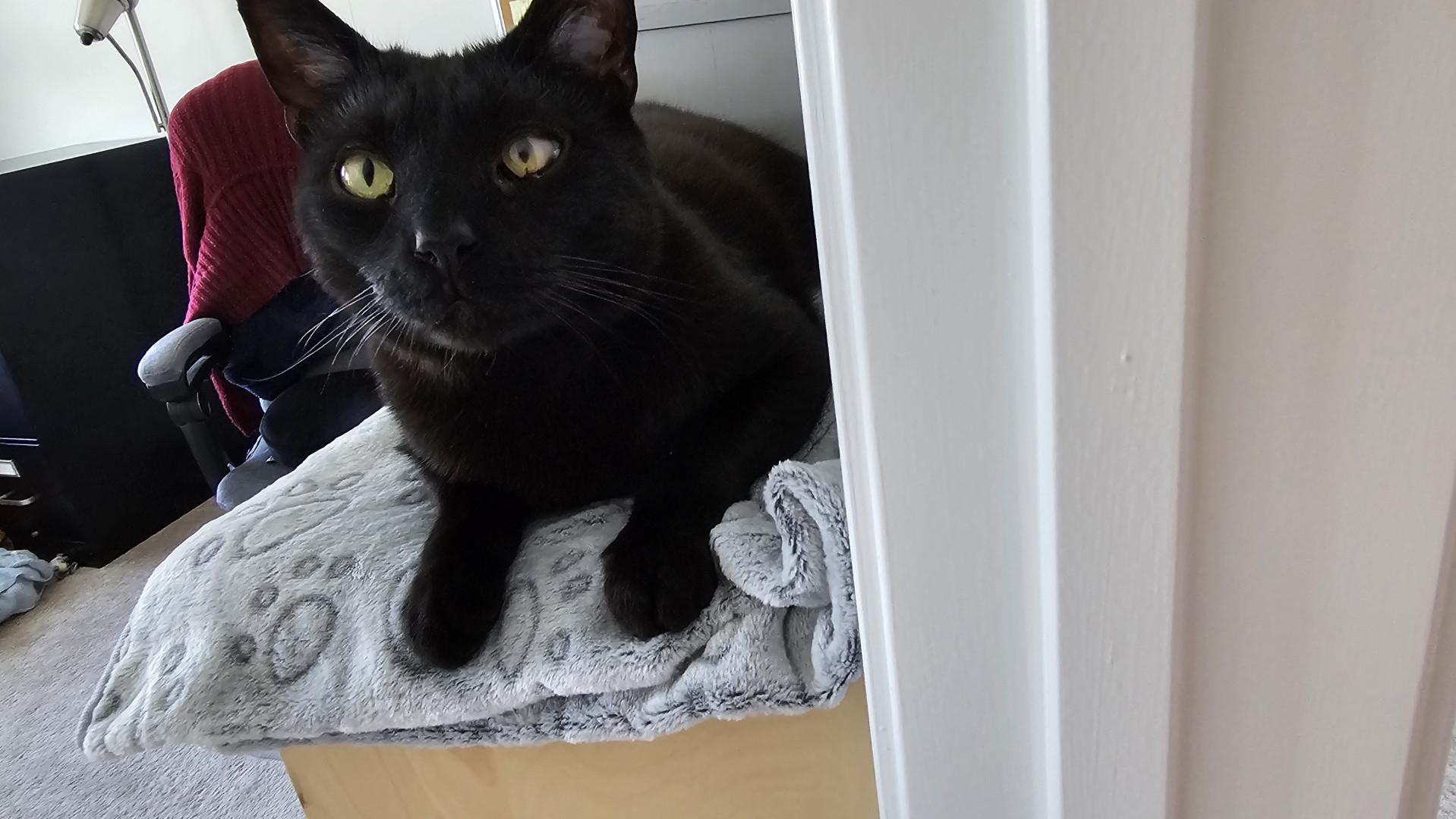 He is the third in line in terms of age among our four cats, but clearly the leader of the pack. I would vote him as the most talkative, too. Always has to have the last meow.