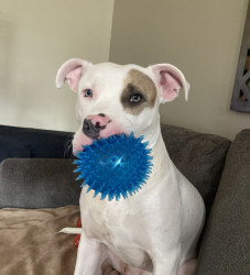 Donovan is only one years old he’s full of energy, loves his ball funny all muscle, but gentle