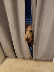 Doodle, she loves to play peekaboo. She is a Golden Doodle 3 years old.