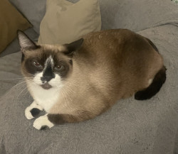 Dotty is very moody and loves to cuddle only oh her terms. She loves to chase dogs. When she gets mad her eyes get the deepest blue