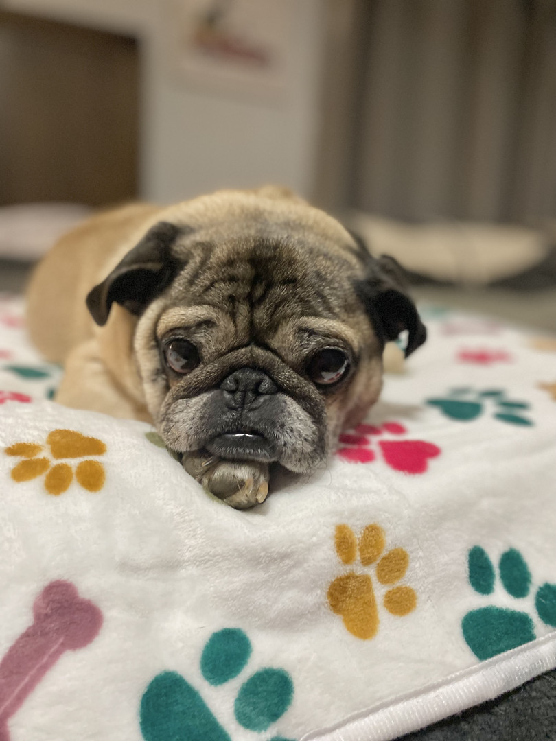 Learn MoreDoug’s on a special diet for his bladder so he can only have prescription treats but here and there we sneak him a snack of meat. He doesn’t like toys but he loves bennebones.