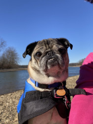 Doug loves people, sleeping, and lounging around. He likes walks, in his stroller (if he gets tired) and car rides in his car seat.