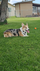 Doug is an energetic corgi who likes to herd other dogs and small children. He also loves his treats :)