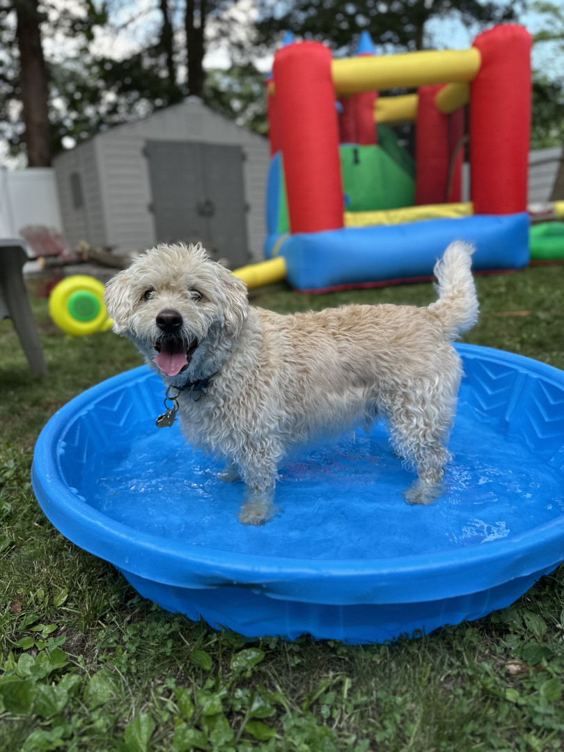 Ever since he was a puppy he’s been chomping on carrots. However Doug does love to get competitive with his golden retriever bestie playing catch at the pool or shredding up tennis balls! (I guess he’s more of a pickleball guy)